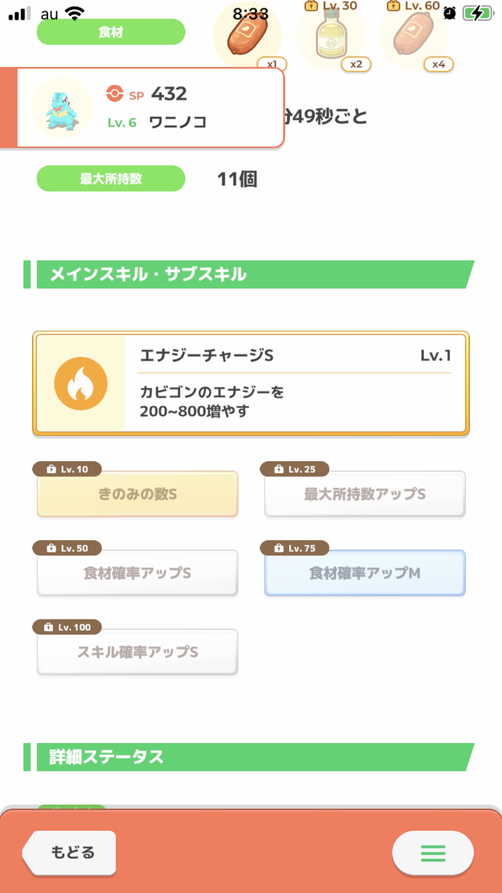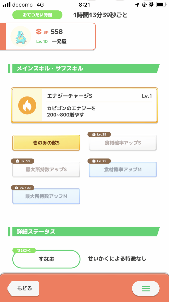 自分のは10食材S、25きのみSで、75所持数S、100お手スピSで、将来のこと考えてたけど、今から意味なかった