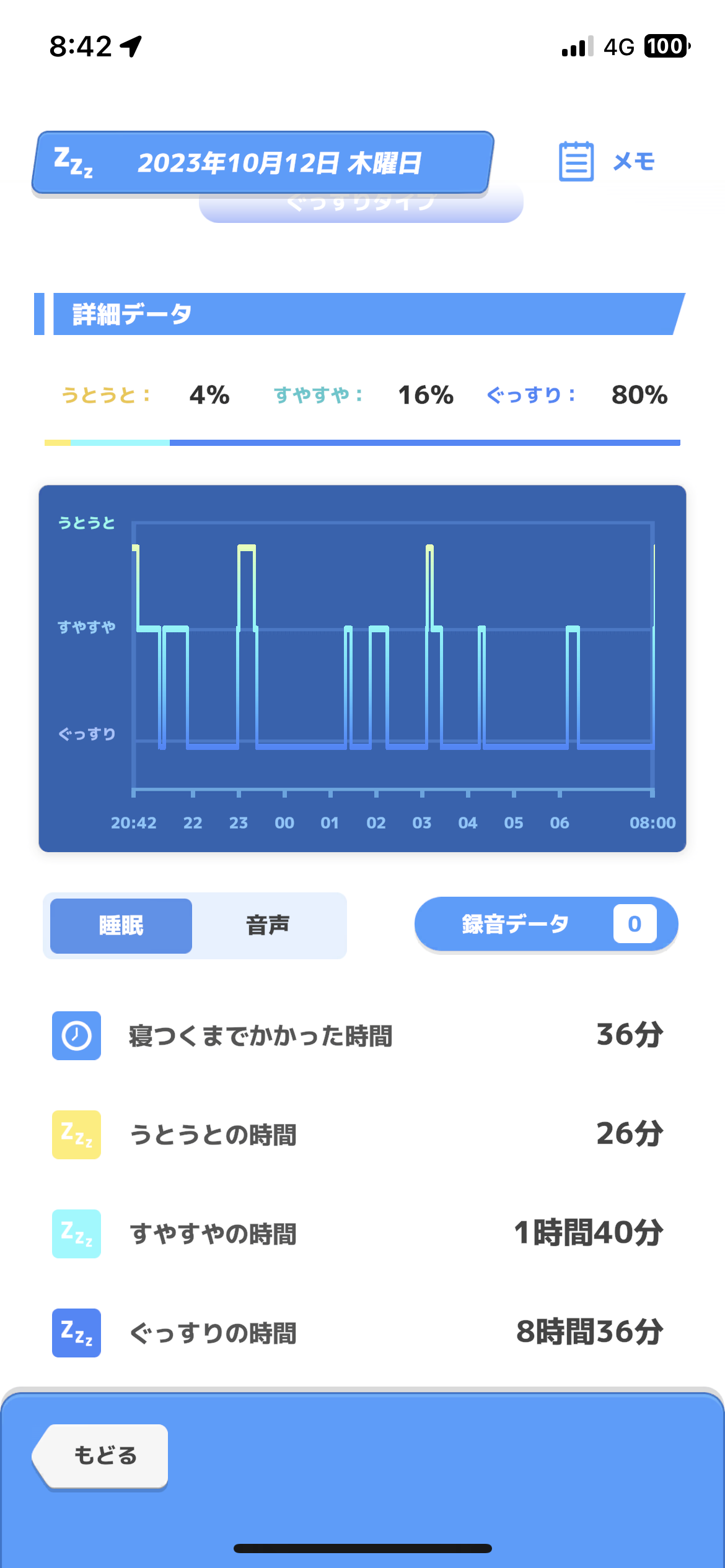 ちゃんとぐっすりとすやすやが交互に出て朝目が覚めてる間はうとうとになった