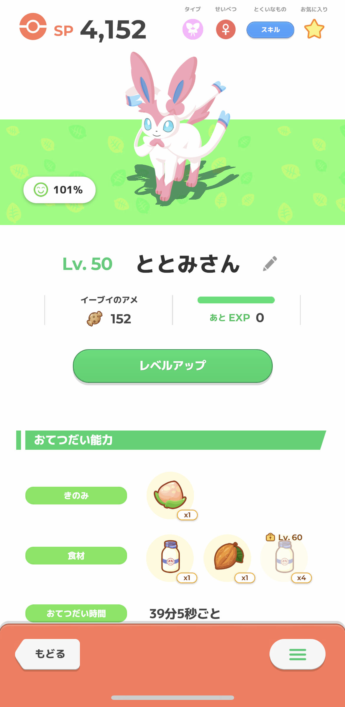 ニンフィアにするか保留してるのがおとなしい(スキル↑元気↓)だわ